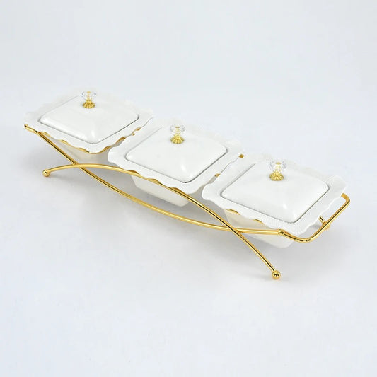 3 Pieces Luxury marble ceramics serving dish food snack serving tray with lid